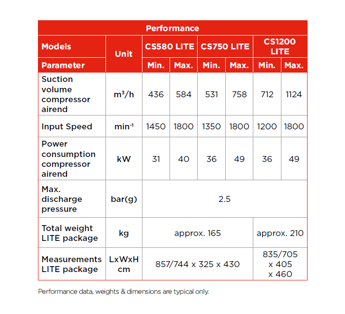 Suction ports on both sides of the compressor offer mounting flexibility to the customer and helps simplify and shorten inlet pipework.